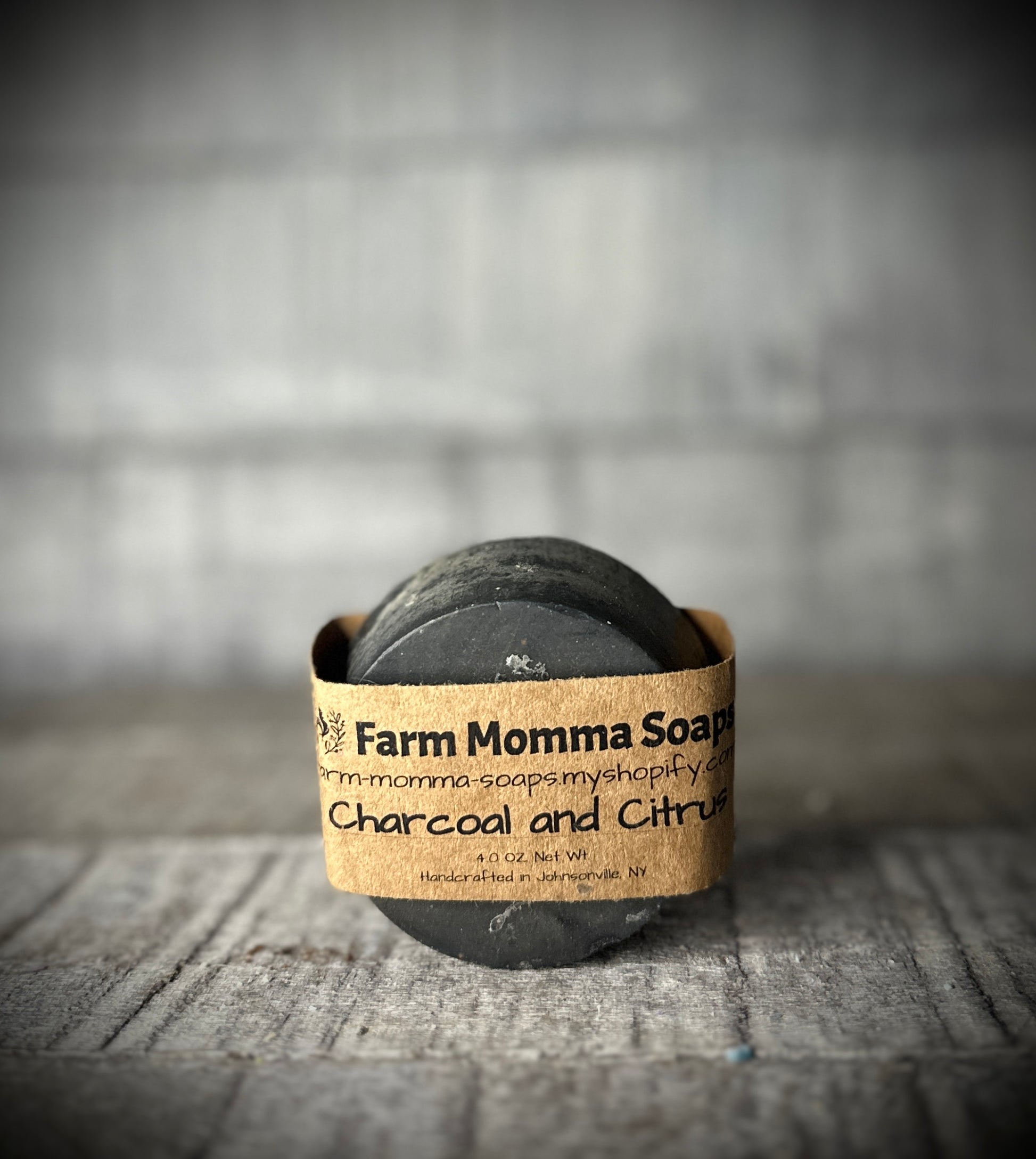 Ingredients: (Charcoal Citrus) saponified coconut oil, olive oil, sunflower oil, castor oil, activated charcoal, orange peel powder, Brazilian yellow clay and essential oil blend
