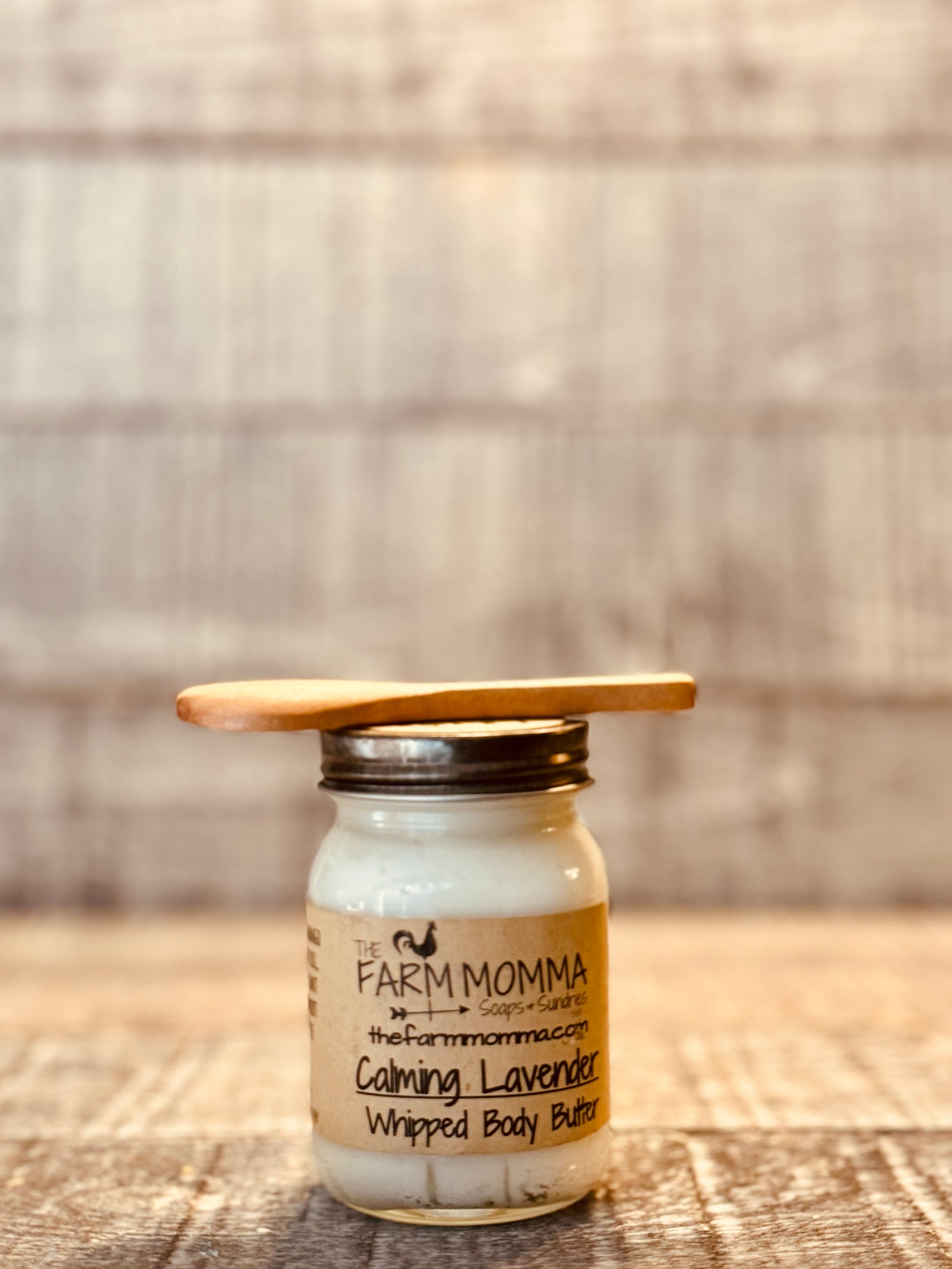 See why our customers are OBSESSED with Farm Momma Soaps LLC Signature Whipped Body Butters they are rich and creamy with a short, sweet and clean ingredients list! Our whipped body butter formula uses high quality raw butters blended with fractioned coconut, jojoba and vitamin E oils then whipped to light creamy texture that melts right in without being excessively greasy!